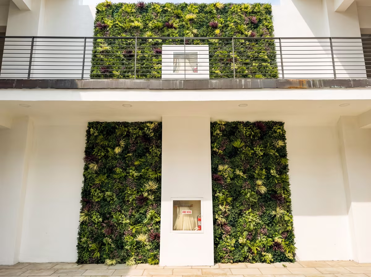 Irrigation-free design means no pipes, minimal water needs, and no drainage planning. UV-resistant polymers in the foliage keep the greens from fading. We pre-fabricated the panels off-site to the courtyard's exact measurements, so on install day, the crew could move fast.
